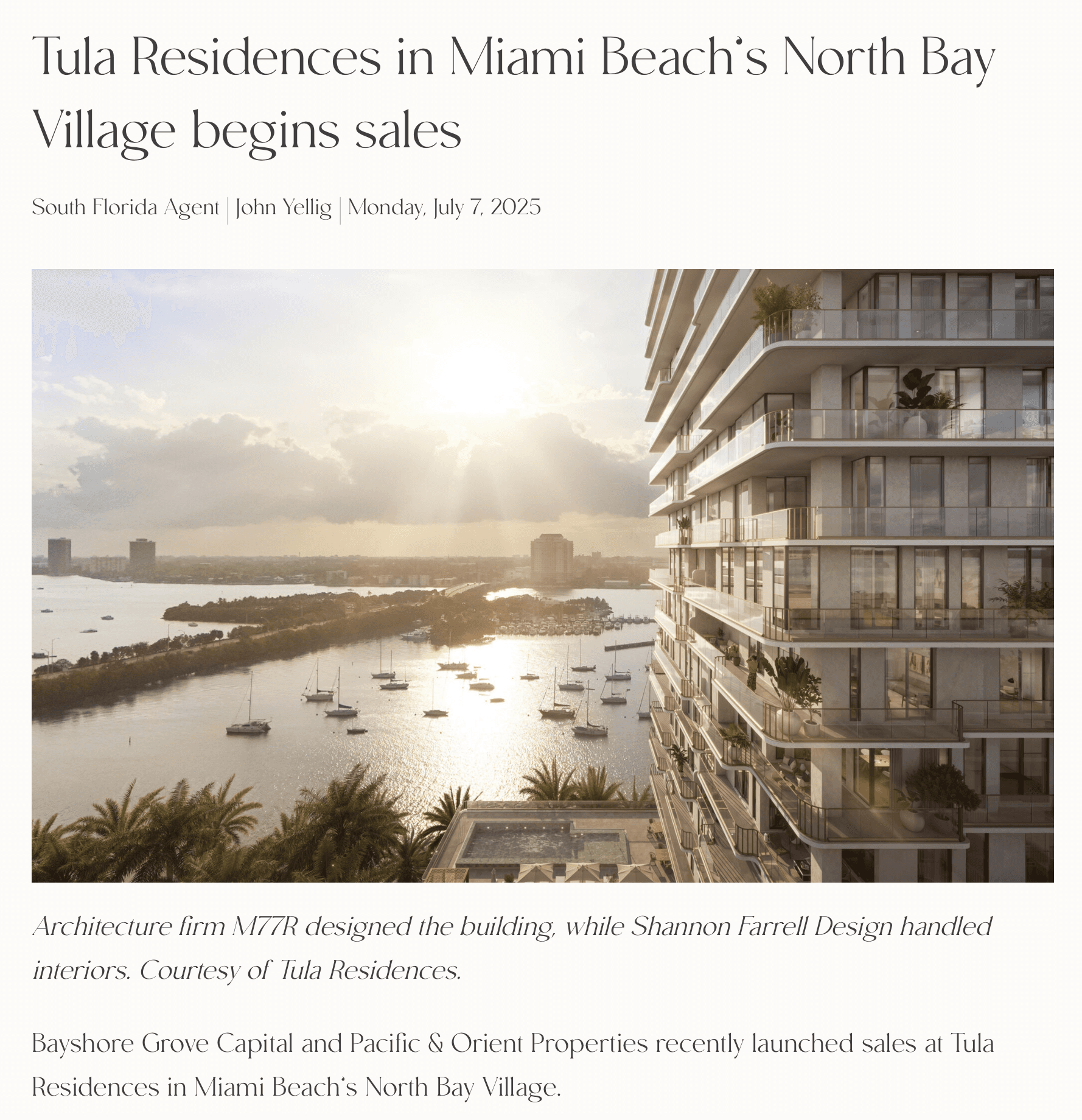 Pacific & Orient Properties Reveals and Breaks Ground on Japanese-Inspired 7918 West Drive North Bay Village Luxury Condo